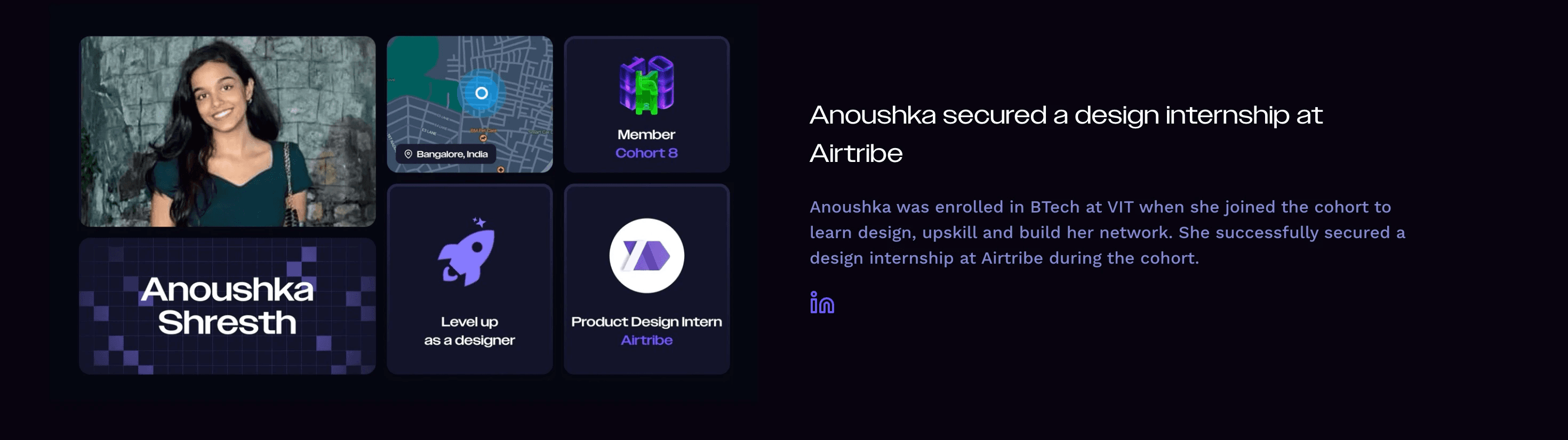 //. likes to make digital experiences feel simple, intuitive, and delightful.It started with bullet journalling and painting before I even knew what UI/UX was. Studying Computer Science at VIT gave me structure and problem-solving skills. Design helped me turn that into products that feel right and seamless.At MPL, I worked on improving the first-time user experience for Callbreak by making the gameplay more approachable. At Airtribe, I focused on visual design and brand consistency across their learning platform. At Niyo, I was a part of the Cards and App Experience team. I built loyalty as an ecosystem while also working on features for the cards experience.
